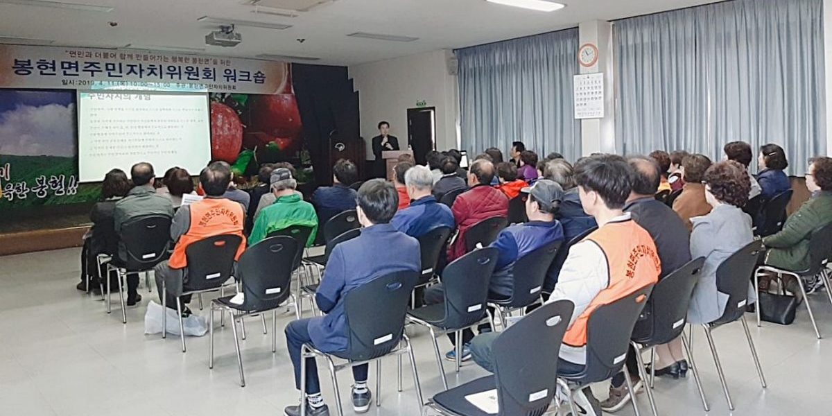 <11일 봉현면 행정복지센터에서 동양대 박진표 교수가 ‘주민자치 활성화를 위한 마케팅&스토리텔링’ 을 주제로 워크숍 특강을 진행하였다.>