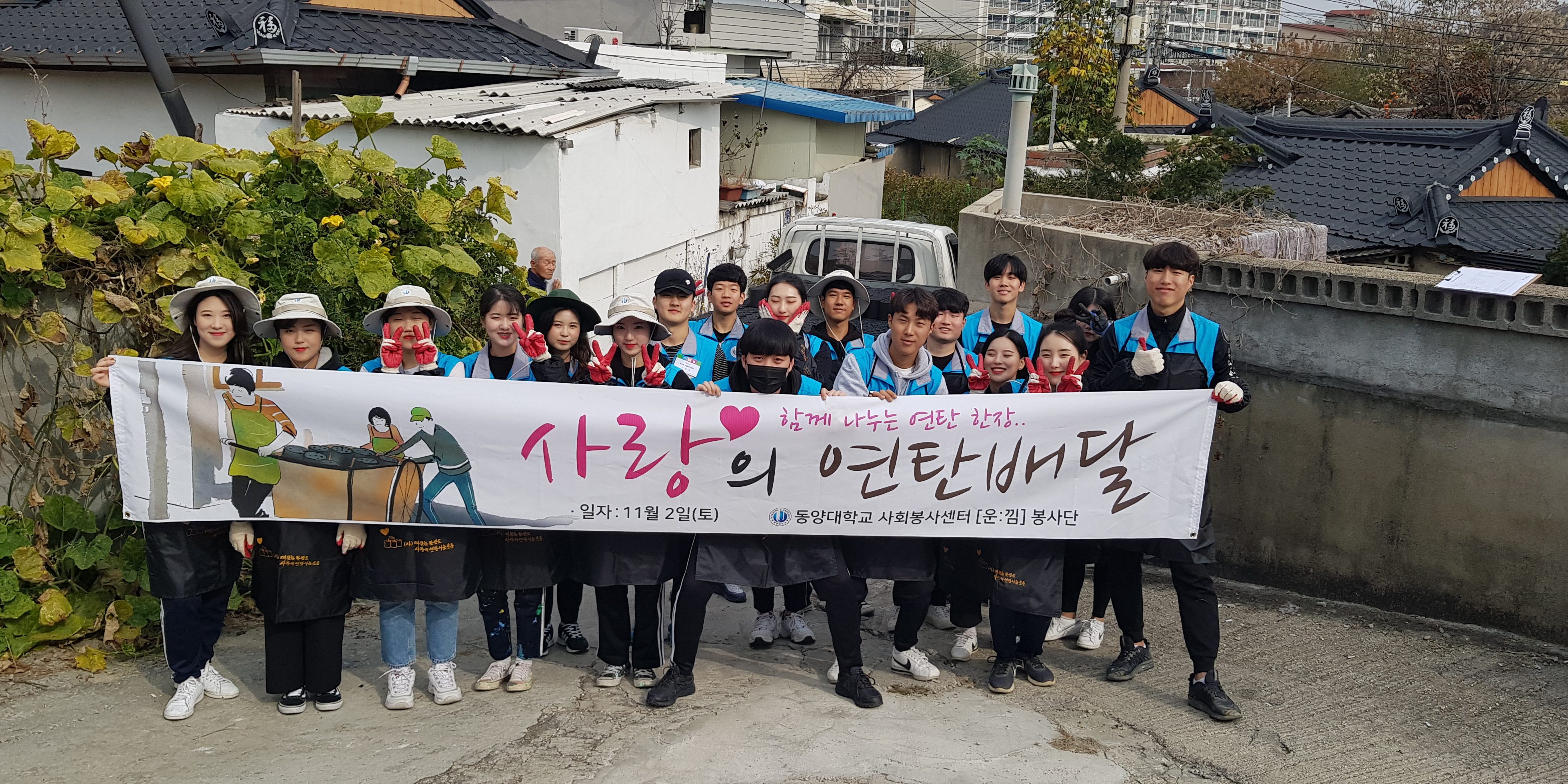 11월142019DYU뉴스동양대학교 ‘운낌’ 봉사단이 지난 11월 2일에 영주지역 소외계층에 연탄 배달 봉사활동을 하였다. Category: DYU뉴스By 홍보팀2019년 11월 14일Post navigationPreviousPrevious post:[보도]동양대 공연영상학부 ‘예당국제대학연극제’ 2관왕 수상NextNext post:[보도]동양대 게임학부 ‘글로벌 게임 챌린지’ 수상