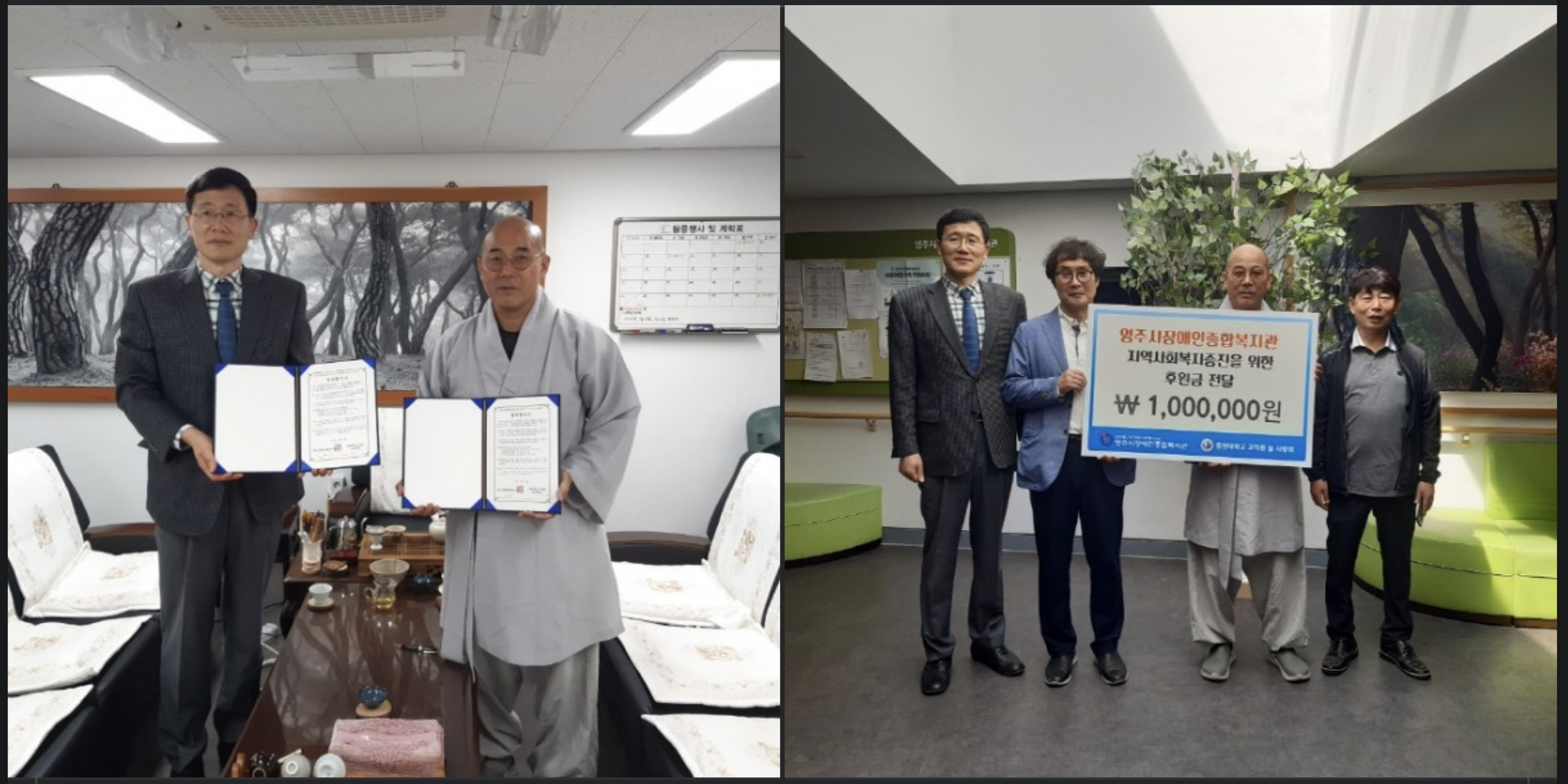 5월262020DYU뉴스2020년 5월 26일(화) 동양대학교 교수, 직원, 조교로 이루어진 봉사모임 ‘늘사랑회’에서 영주시장애인종합복지관과 지역장애인의 사회통합을 지지하기 위한 업무협약서를 체결하였으며, 후원금(금1,000,000원)을 전달하였습니다. Category: DYU뉴스By 홍보팀2020년 5월 26일Post navigationPreviousPrevious post:[교수동정] 김진만교수 제41회 서울연극제 특별공로상 수상NextNext post:[보도]손가락 절단 위기 환자 응급 처치한 동양대 간호학과 임종하 학생, 공로상 수여