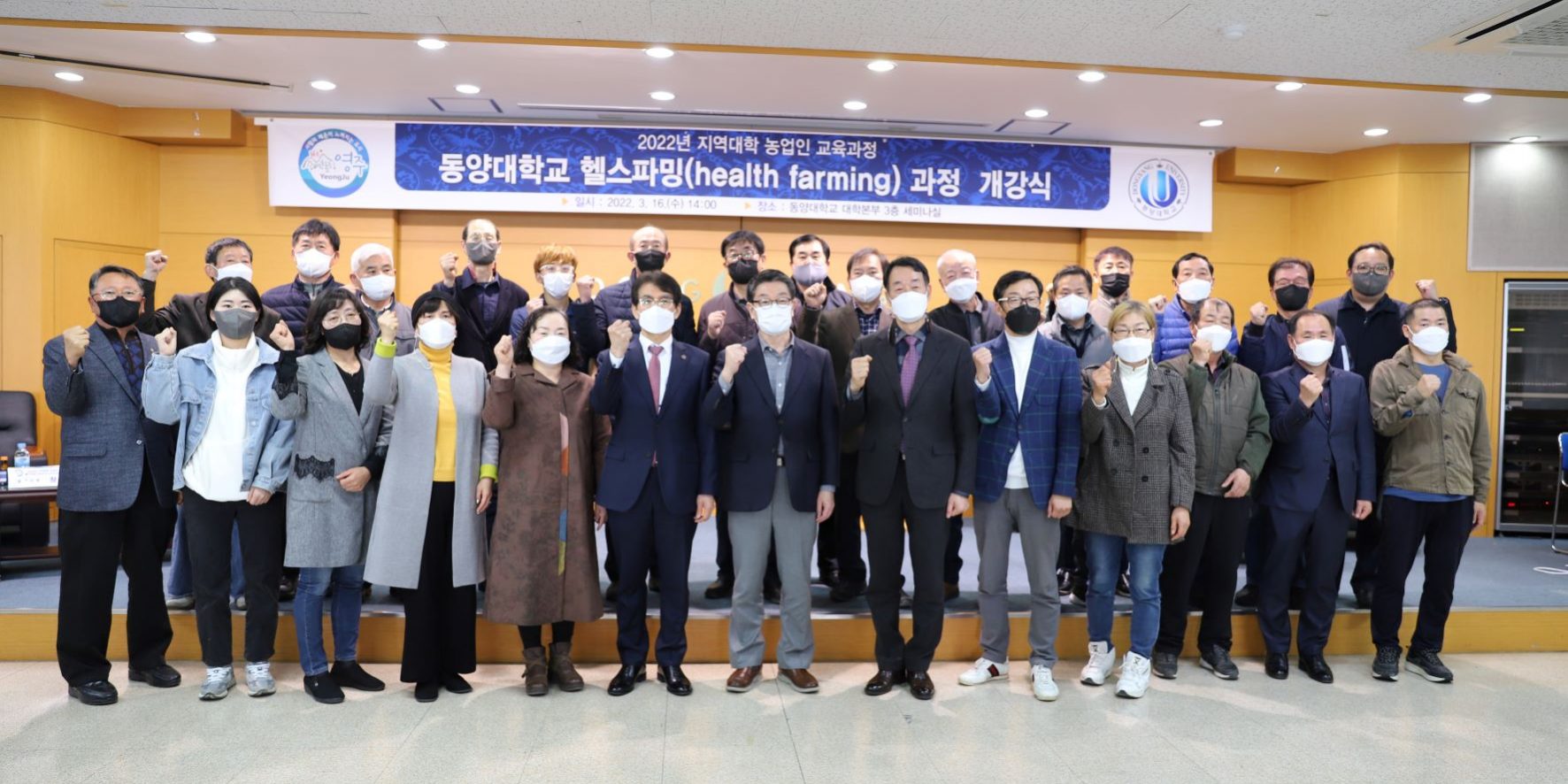 3월162022DYU뉴스2022년 3월 16일에 동양대학교에서 2022 영주시 농업인 전문교육 헬스파밍 과정 개강식을 하였다. 동양대학교 이하운 총장, 영주시 장욱현 시장, 영주시농업기술센터 장성욱 소장, 동양대학교 산학협력단 노경철 단장, 헬스파밍과정 이승환 책임교수와 수강생 20여명이 참석하였다. Category: DYU뉴스By 홍보팀2022년 3월 16일Post navigationPreviousPrevious post:[보도] 제28대 「오늘」 총학생회 출범식 진행NextNext post:[보도] 풍기원룸협회, 동양대에 발전기금 500만원 기탁