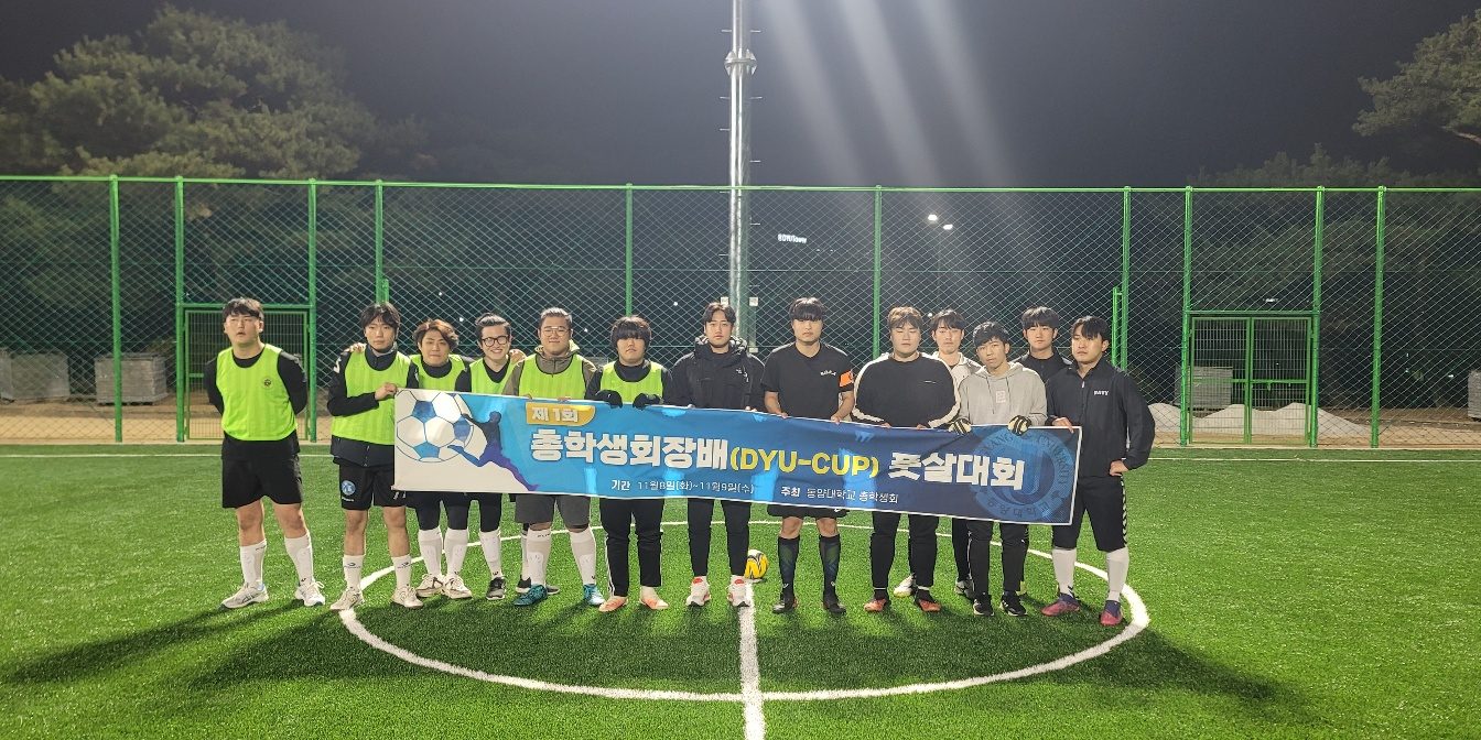 11월112022DYU뉴스11월 8일(화)~9일(수)까지 동양대 영주캠퍼스에서 「제1회 동양대학교 총학생회장배 풋살 대회」 가 열려 성공리에 마무리되었습니다. Category: DYU뉴스By 홍보팀2022년 11월 11일Post navigationPreviousPrevious post:[보도] 동양대 학생상담센터, 교직원 참여 원예치료 프로그램 진행NextNext post:[보도] 동양대 의무군사학과, 취창업지원 1社-1청년 프로그램 참여