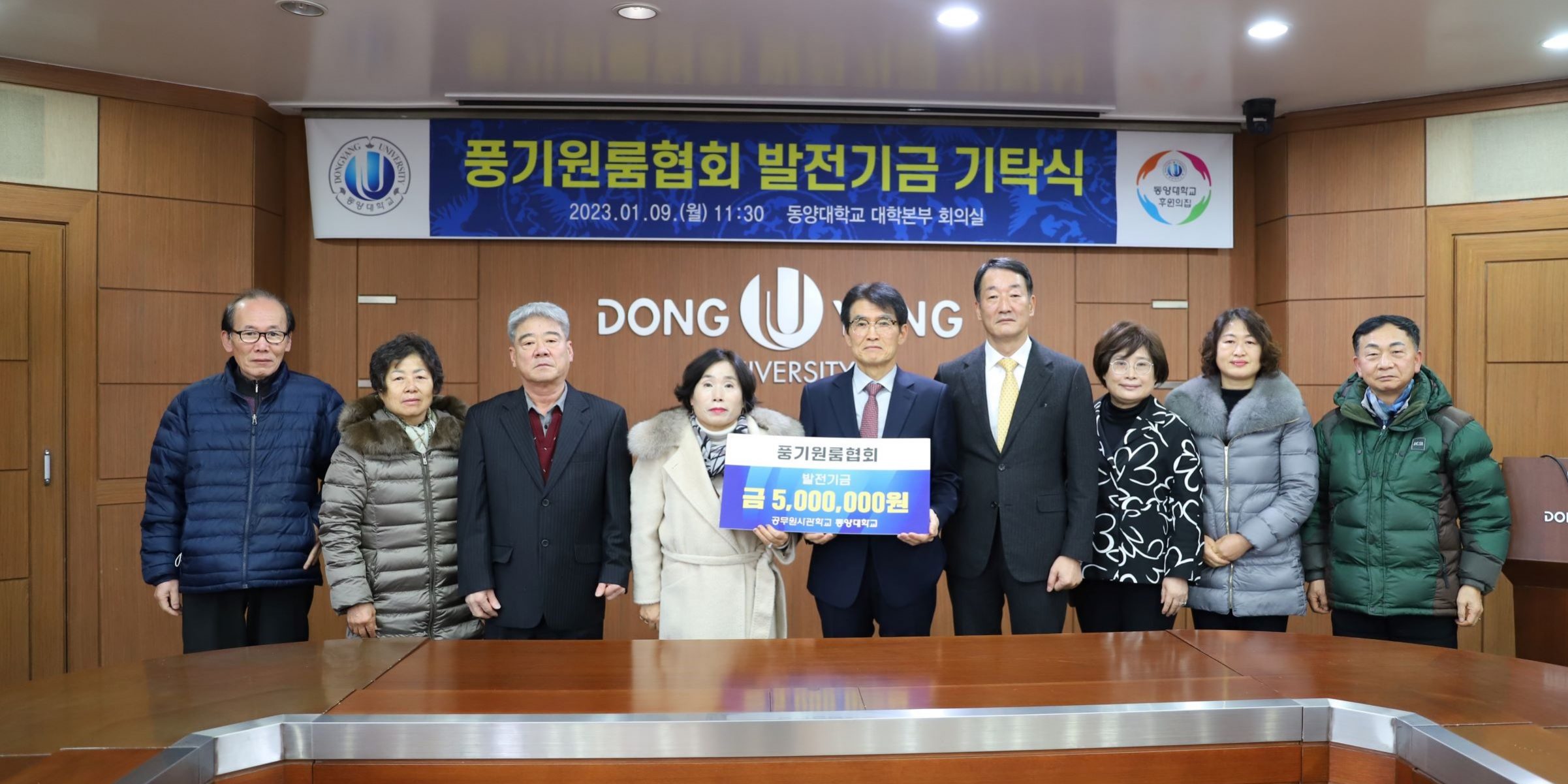 동양대(총장 이하운)는 풍기원룸협회(회장 김보미)가 지난해에 이어 올해에도 발전기금 500만원을 기탁했다고 9일 밝혔다.