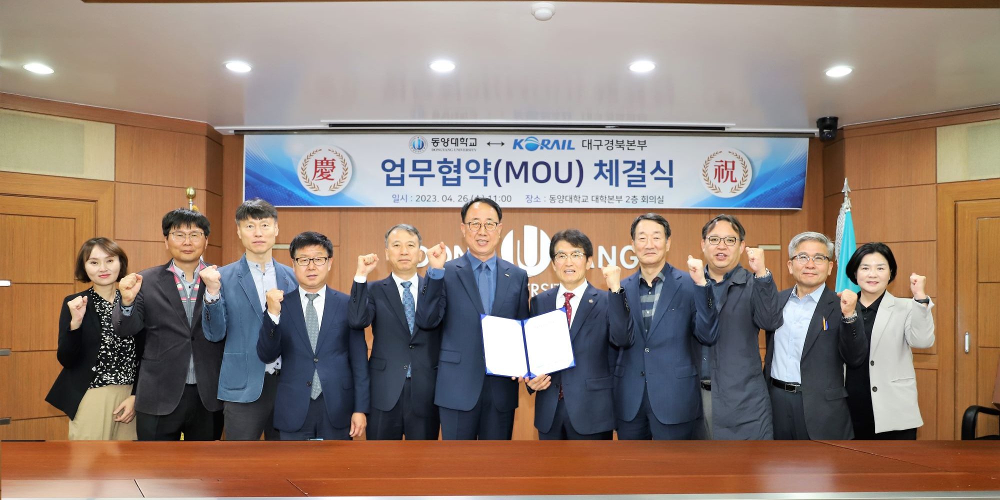 동양대(총장 이하운)는 코레일 대구경북본부(본부장 이두형)와 26일 대학 본부 회의실에서 양 기관 관계자 10여 명이 참석한 가운데 업무협약(MOU)을 체결했다.