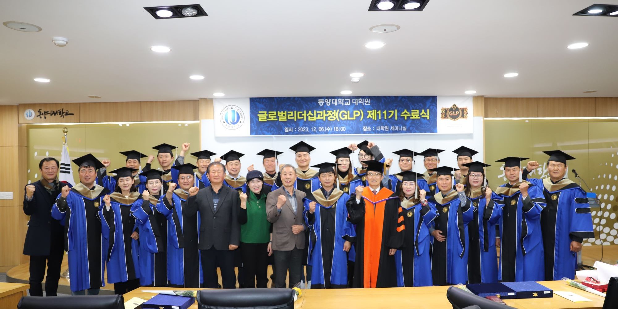 12월82023DYU뉴스동양대학교 대학원 영주캠퍼스 글로벌리더십(GLP) 11기의 수료식이 지난 6일 동양대학교 영주캠퍼스에서 개최되었다. 수료식에는 이하운 총장, 이재철 대학원장, GLP 선배 원우들과 동두천캠퍼스 GLP 원우들이 참석하였다. 동두천캠퍼스 GLP 원우회에서는 축하 격려금 1백만원을 영주캠퍼스 11기 수료생들에게 전달하였다. 또한 글로벌리더십(GLP) 11기 원우들은 수료식을 기념하여 동양대학교 발전을 위해 이백만원을 기탁하였다. Category: DYU뉴스By 홍보팀2023년 12월 8일Post navigationPreviousPrevious post:[보도] 동양대 제29대 총학생회, 사랑의 연탄배달 봉사활동 진행NextNext post:[보도] 동양대학교 동두천캠퍼스, 대학원 글로벌리더십과정 제4기 수료식 개최
