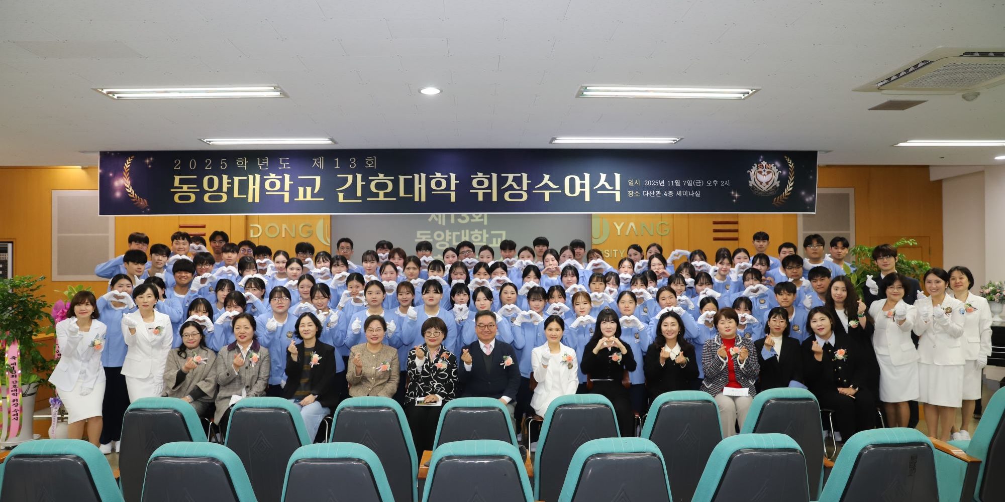 동양대학교 간호대학은 2025년 11월 7일, 영주캠퍼스 다산관에서 ‘제13회 간호대학 휘장 수여식’을 개최했다. 이번 행사는 간호학과 2학년 학생들이 임상실습을 앞두고 간호전문인으로서의 사명감과 책임 의식을 다짐하는 뜻깊은 자리로 마련됐다.