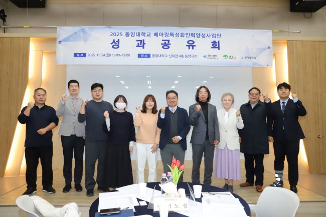 “학생들의 지역 정주 의지가 돋보여” 동양대학교는 지난 11월 24일(월) 신재관 4층 동양극장에서 ‘2025 동양대학교 베어링특성화인력양성사업단 성과공유회’를 개최했다. 이번 행사는 경상북도와 영주시의 재정지원 아래 추진된 베어링특성화 인재양성사업의 핵심 성과를 공유하고, 지역 산업 맞춤형 미래인재의 성장 과정을 확인하기 위해 마련되었으며, 동양대학교 허노정 부총장, 노경철 사업단장, 교수진, 산업체 관계자, 재학생 등 100여 명이 참석해 성황리에 진행되었다. 성과공유회에서는 부단장…
