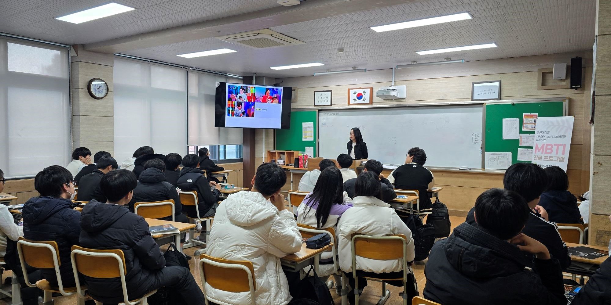 동양대학교 대학일자리플러스센터(센터장 김진만)는 지역 청년들의 진로 탐색을 지원하기 위해 운영한 ‘지역 내 학교 고용서비스_지역청년을 위한 MBTI 진로 프로그램’을 11월 27일(목) 한국철도고등학교(경북 영주시)에서 성공적으로 마무리했다. 이번 프로그램에는 한국철도고 재학생 80명이 참여해 높은 관심을 보였다.
