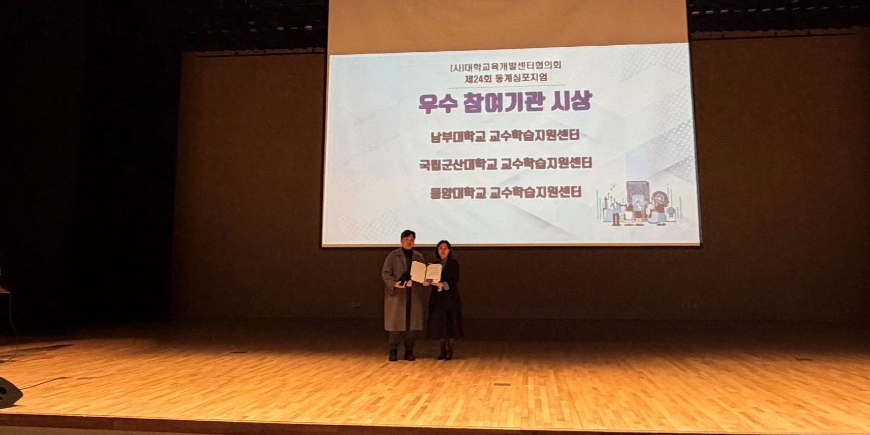 동양대학교 교수학습지원센터는 2026년 2월 5일(목) 동덕여자대학교 백주년기념관에서 개최된 (사)대학교육개발센터협의회 2025년도 제24회 동계심포지엄에서 ‘2025년도 우수기관상’을 수상하였다.