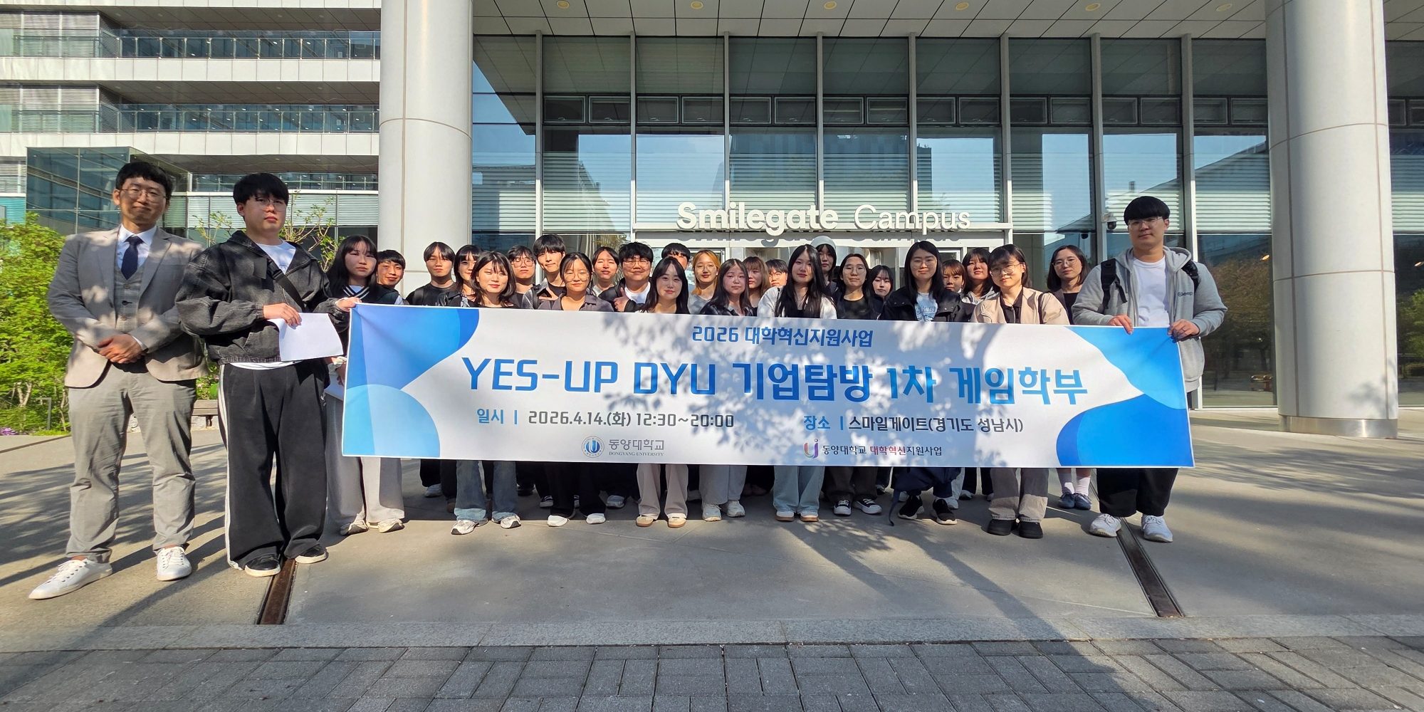 동양대학교(총장 최재욱) 대학혁신지원사업단은 지난 14일 게임학부 재학생을 대상으로 경기도 성남시 소재 스마일게이트에서 ‘2026 YES-UP DYU 기업탐방 1차 게임학부’ 프로그램을 운영했다고 밝혔다.