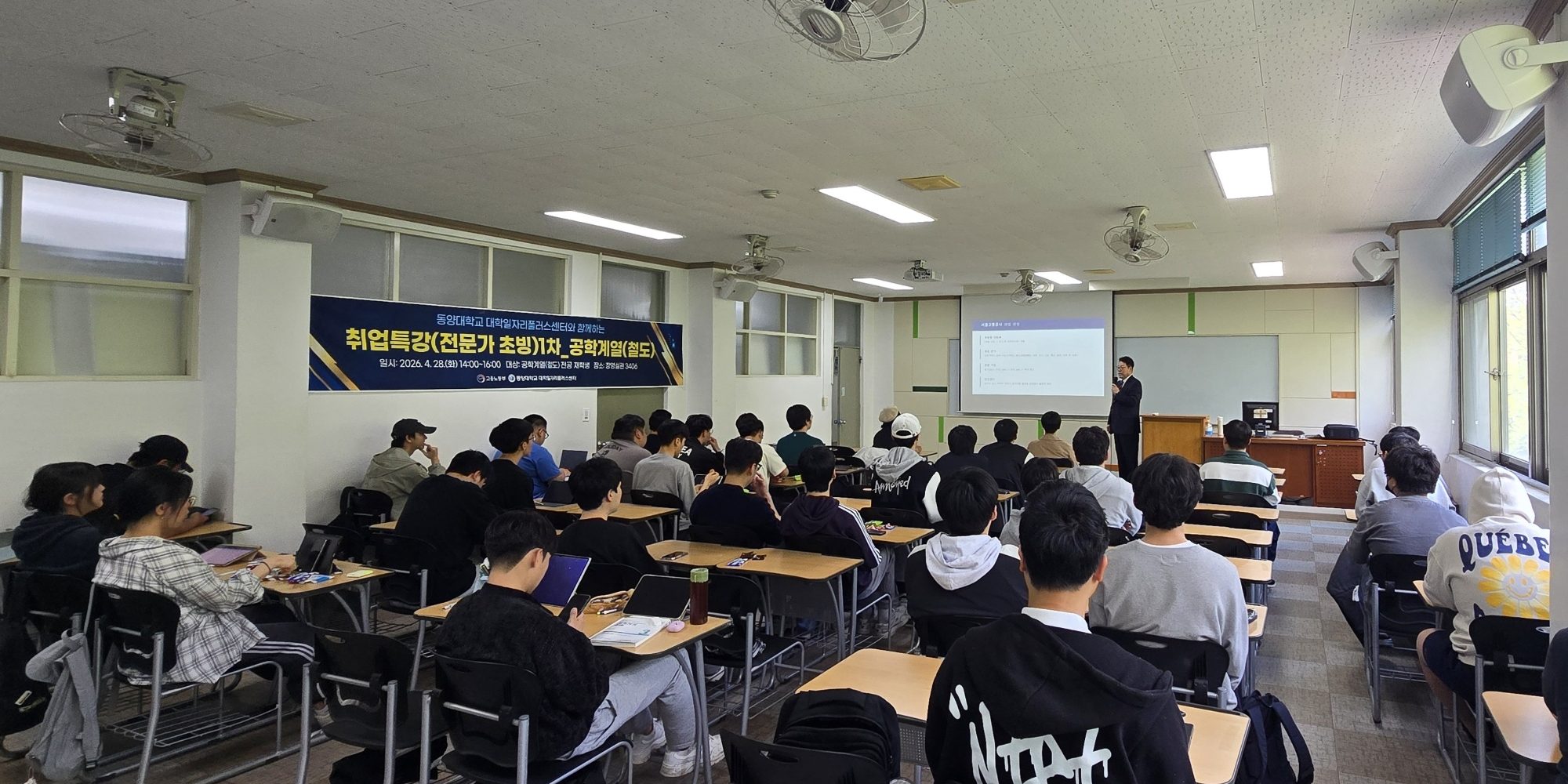 동양대학교(총장 최재욱) 대학일자리플러스센터는 지난 4월 28일 철도대학 재학생 37명을 대상으로 ‘철도 분야 직무 역량 강화 및 취업 성공 전략’ 특강을 성황리에 개최했다고 밝혔다.