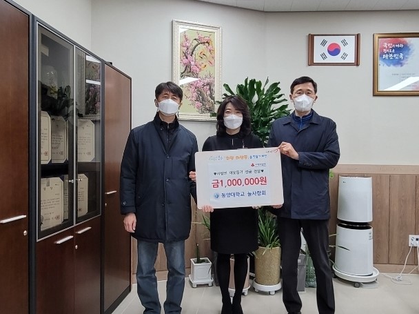 동양대학교 ‘늘사랑회’는 11월 17일(수) 영주시 하망동 행정복지센터를 방문해 기부금 100만원을 전달했다. ‘늘사랑회’는 동양대 교내 교직원 봉사단체로, 약 26년간 어려운 이웃을 위해 꾸준한 봉사활동 및 기부를 해오고 있다. 이번 기부는 회원 30여명이 뜻을 모아 기부했다. 이재기 회장은 “코로나 장기화로 인하여 어려움을 겪고 있는 분들에게 조금이나마 도움이 되었으면 좋겠다”고 밝혔다.