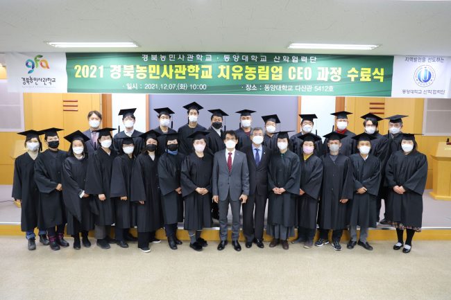 2021년 12월 7일에 동양대학교에서 2021 영주시 농업인 전문교육 헬스파밍 과정 수료식을 하였다. 동양대학교 이하운 총장, 영주시 장욱현 시장, 영주시농업기술센터 장성욱 소장, 동양대학교 산학협력단 노경철 단장, 헬스파밍과정 이승환 책임교수, 홍연웅 주임교수와 수료생 30명이 참석하였다. 수료식에서는 수료증 및 표창장, 봉사상, 모범상을 수여하였다.