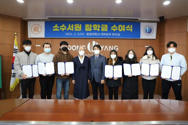 동양대(총장 권광선)는 3일 제2회 소수서원장학금 장학증서 수여식을 개최했다. 소수서원은 소수서원장학금으로 동양대학교에 지난 2018년에 이어 매년 기부 약정식을 통한 인재양성기금으로 2회째 이어져 오고 있다. 소수서원장학금을 받는 장학생들은 부모가 영주시에 거주하는 동양대학교 재학생으로 선비인성함양의 기초소양을 갖춘 자로 선발했다. 소수서원 김태균 원장은 “학생들의 맑은 눈빛이 희망스럽고, 열심히 해서 우리나라 동량으로써 소수서원의 선비정신을 가진 인재로 성장해주길 바란다”고 당부했다. 또한…