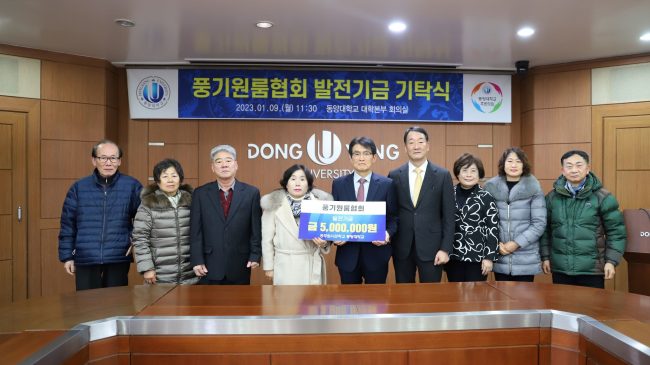 동양대(총장 이하운)는 풍기원룸협회(회장 김보미)가 지난해에 이어 올해에도 발전기금 500만원을 기탁했다고 9일 밝혔다. 풍기원룸협회는 동양대와 상생을 하기 위해 40여 원룸 사장님들이 뜻을 함께하여 2017년 발전기금 1,000만원 기탁을 시작으로 매년 동양대에 발전기금을 기탁했다. 김보미 풍기원룸협회 회장은 “동양대 발전을 위해 더 협력하고 응원하겠다”라며 “약소한 금액이지만 학생들이 열심히 학업에 매진하는 데 조금이나마 도움이 됐으면 좋겠다”라고 말했다. 이하운 총장은 “지역민들의…