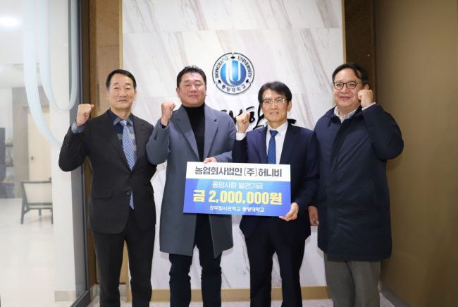 ▪ 대학 발전기금 2백만원 기탁 ▪ 창업보육센터 지원을 통해 매출과 고용 등 고속 성장으로 우수기업 입증 ▪ 대학과 기업이 상생발전 할 수 있도록 상호 협력 동양대(총장 이하운)는 창업보육센터 입주기업인 농업회사법인㈜허니비(대표 김대성)가 발전기금 2백만 원을 기탁 했다고 11일 밝혔다. 농업회사법인㈜허니비는 동양대 창업보육센터 입주기업으로 직접 생산한 꿀을 기반으로 관련 가공식품의 고부가가치화를 위해 지속해서 제품을 출시하고 있다. 2019년 창업보육센터에 입주하였으며 신제품…