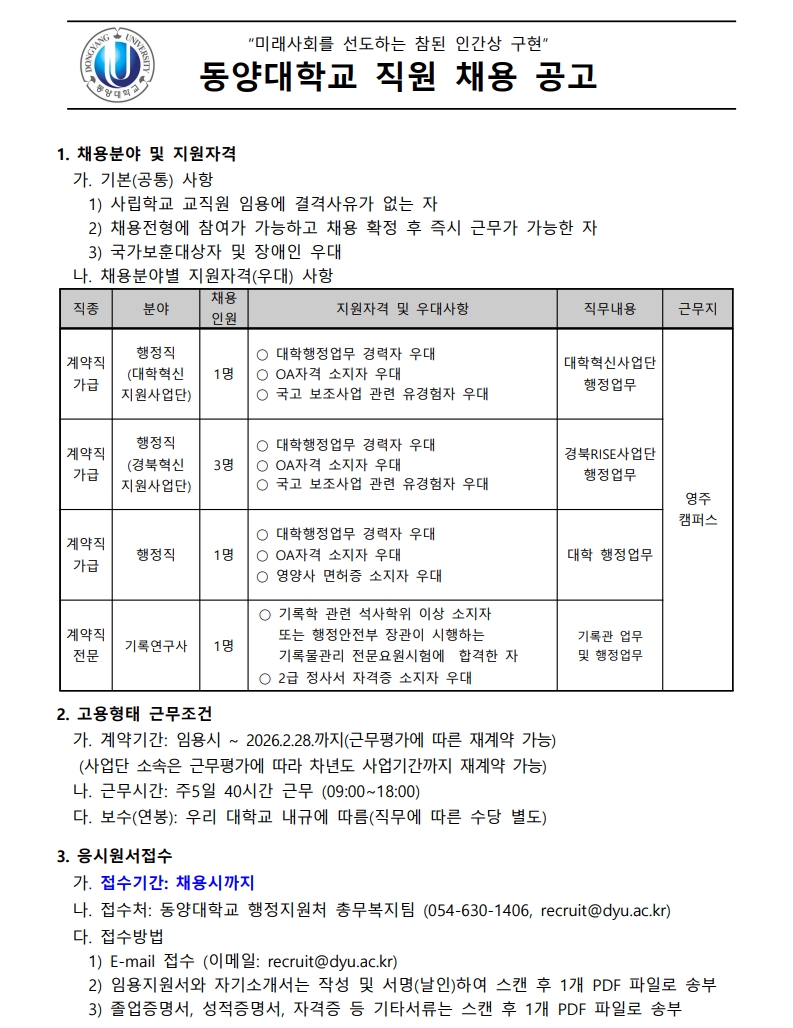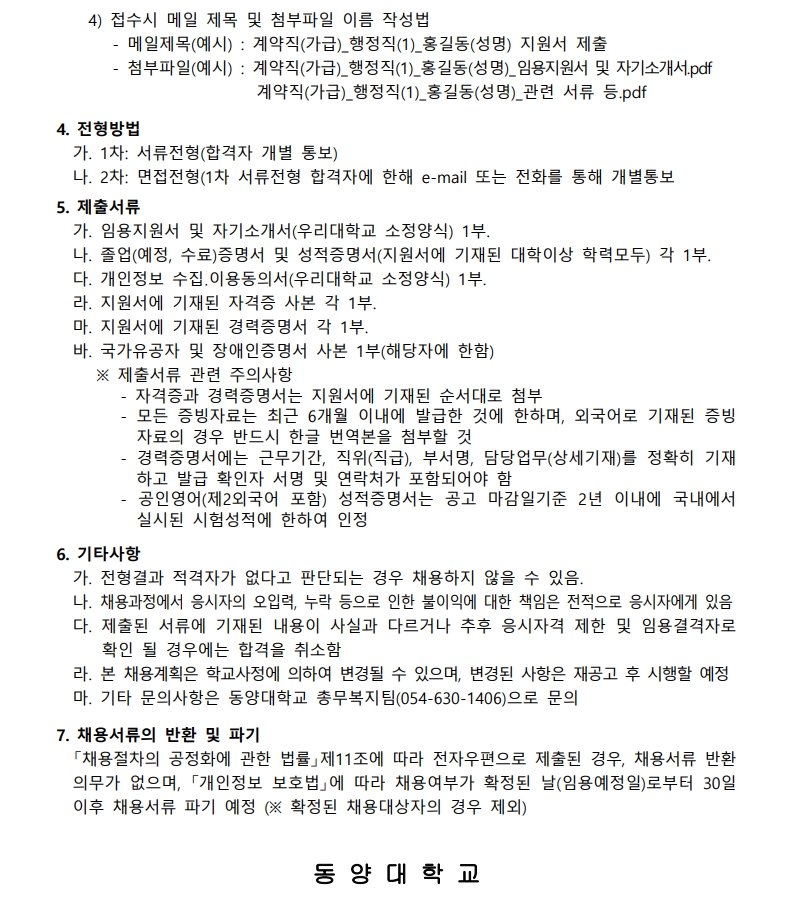 [공고] 동양대학교 직원 채용 공고[수정]