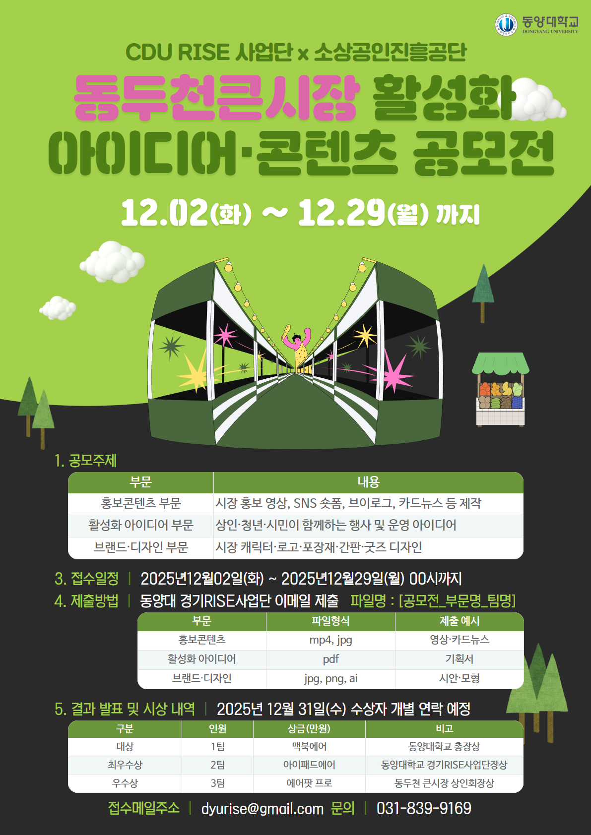 [2025 경기RISE사업단] 동두천큰시장 활성화 아이디어·콘텐츠 공모전 신청 안내