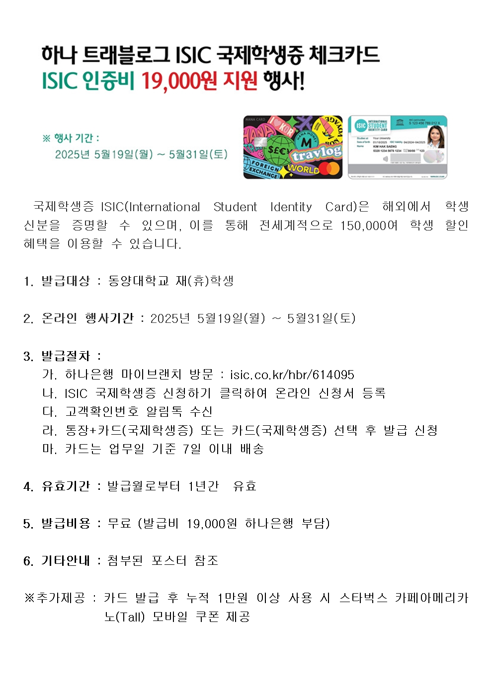 2025년도 상반기 국제학생증 ISIC 발급비 지원행사 안내
